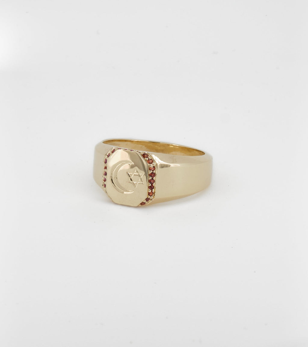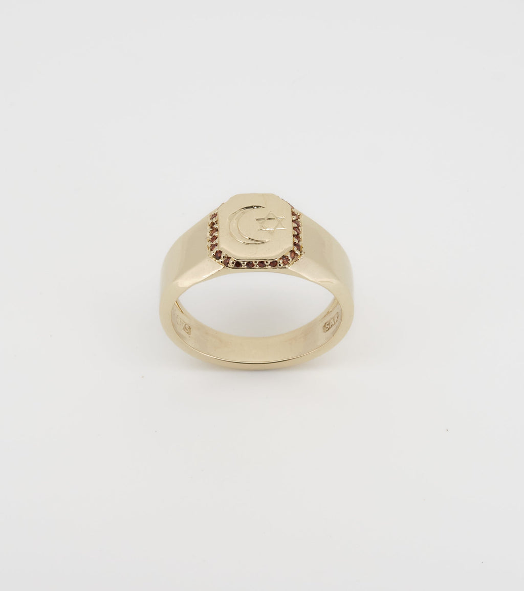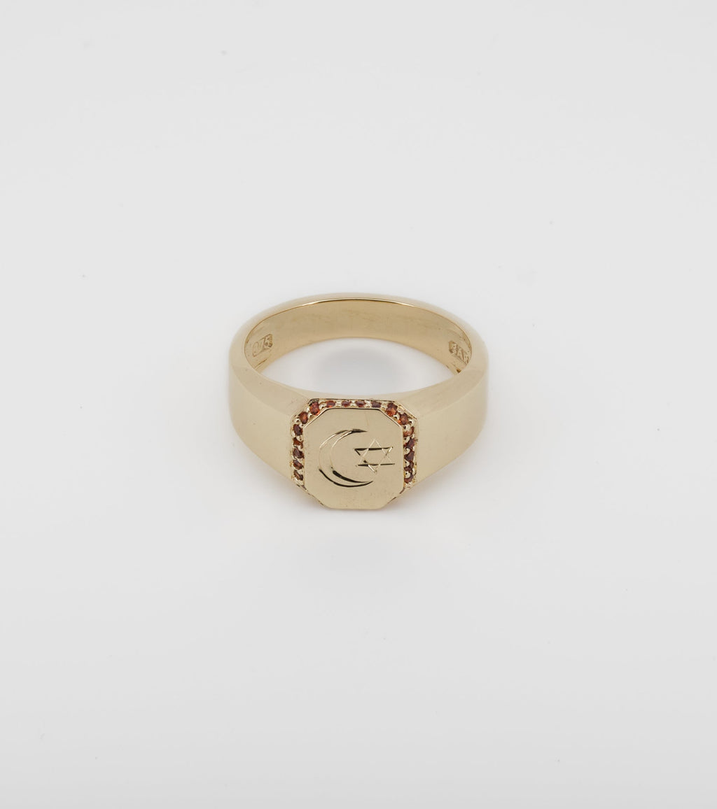 Octagon signet with Spessartite Garnet halo