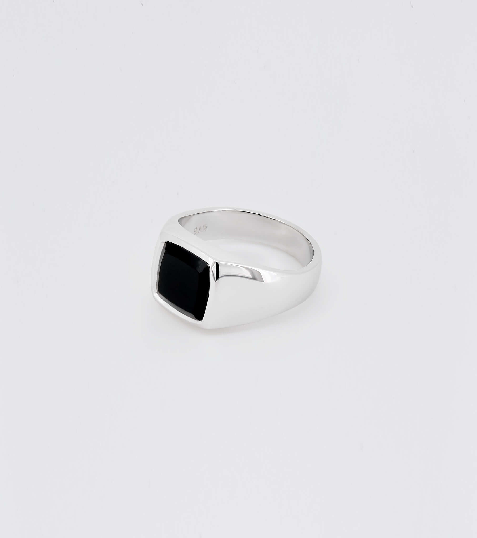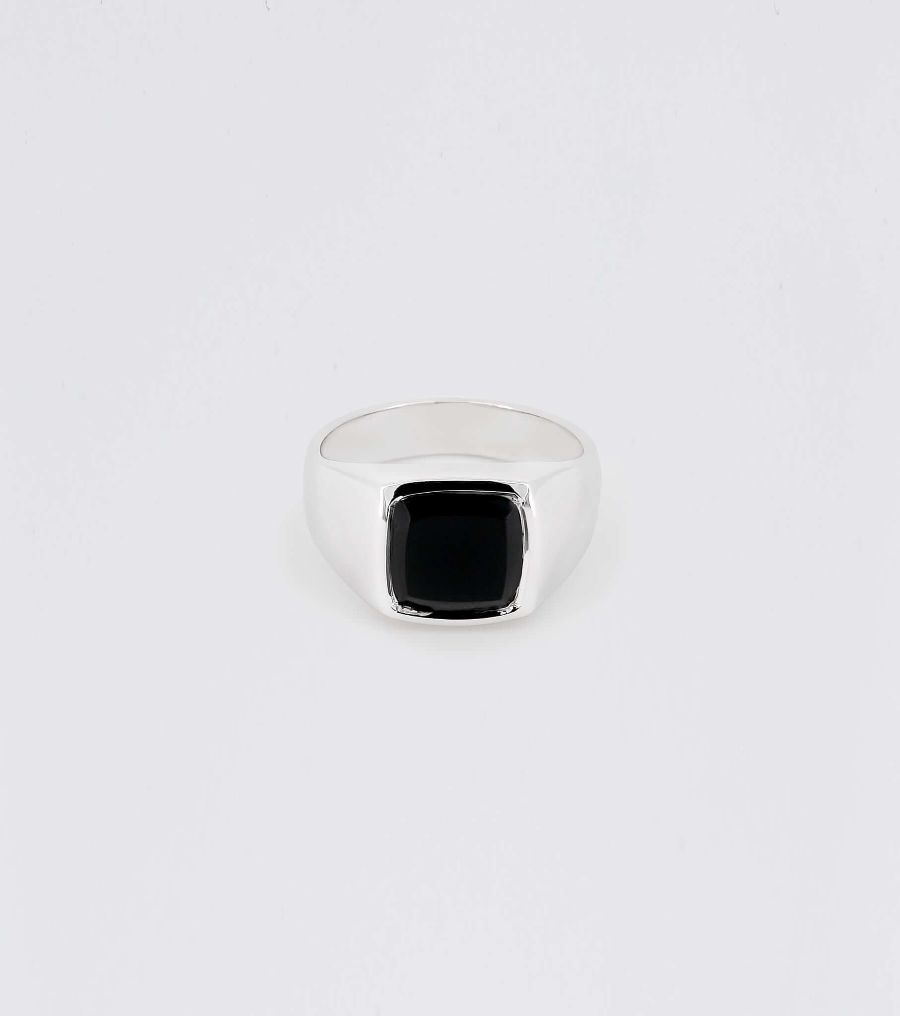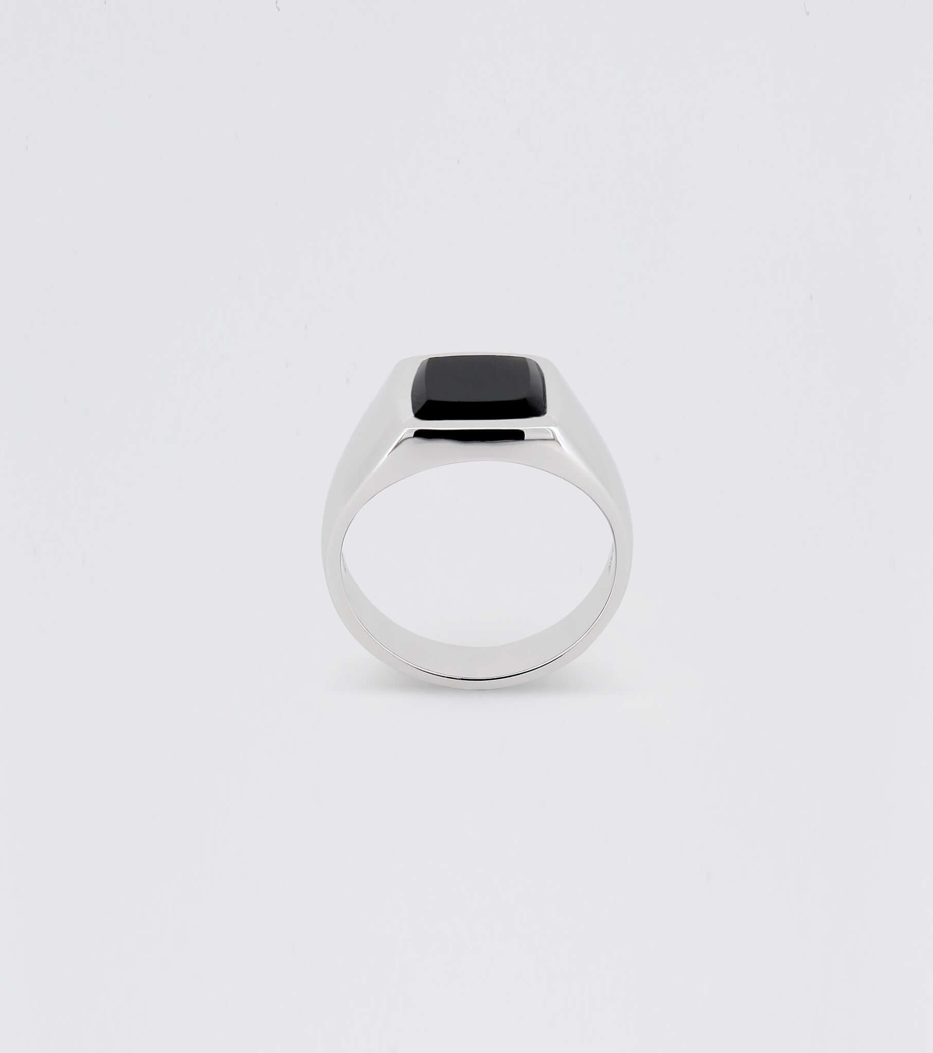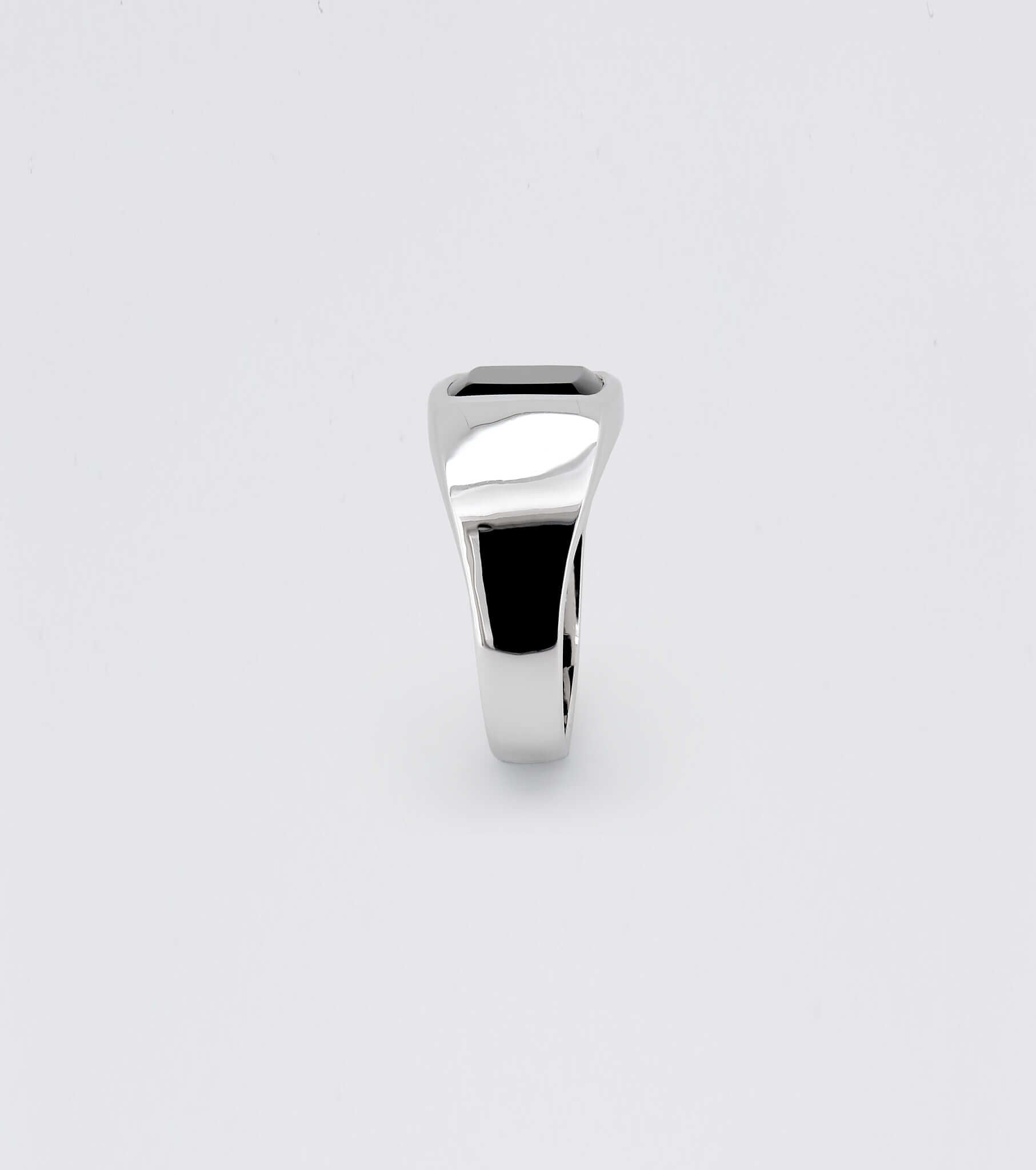 A hand cut black onyx with stepped edges is set in our Bevelled signet