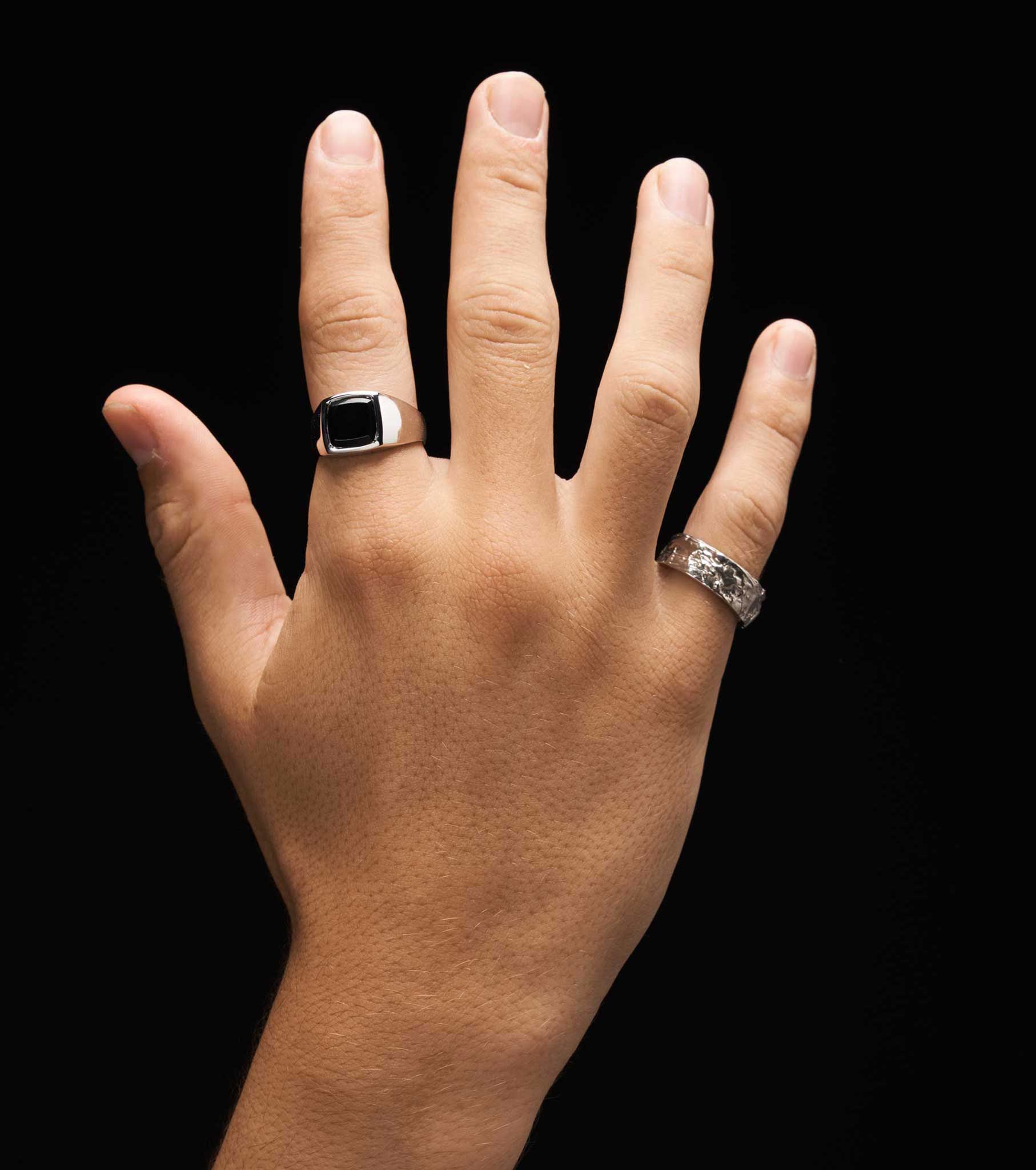 From the Greek ὄνυξ, meaning "claw" or "fingernail". Throughout history, Onyx it has been used by skilled craftsman as they created breathtakingly detailed carvings to then be setted on rings. This technique was popular in the Victorian era, where the opaque shine of black onyx was also the most used in traditional mourning jewellery.