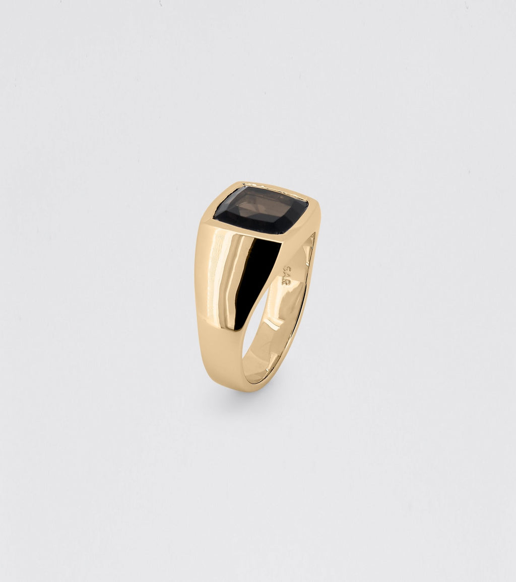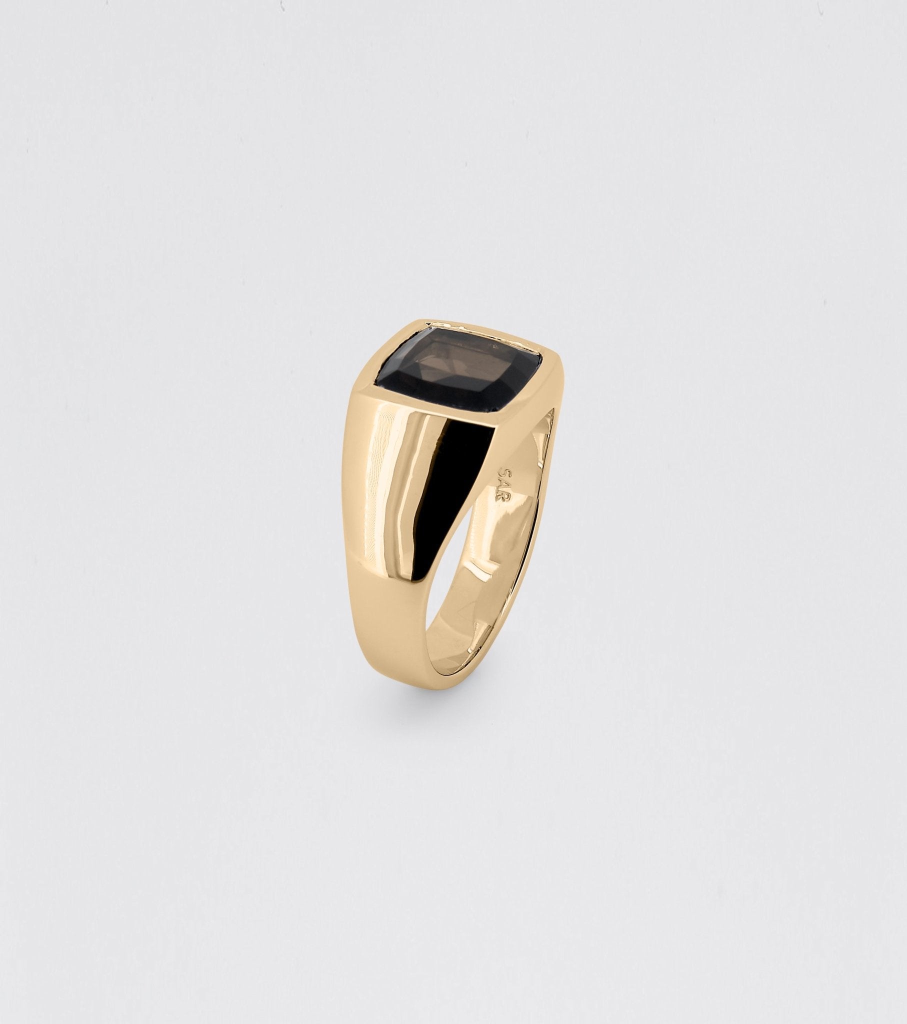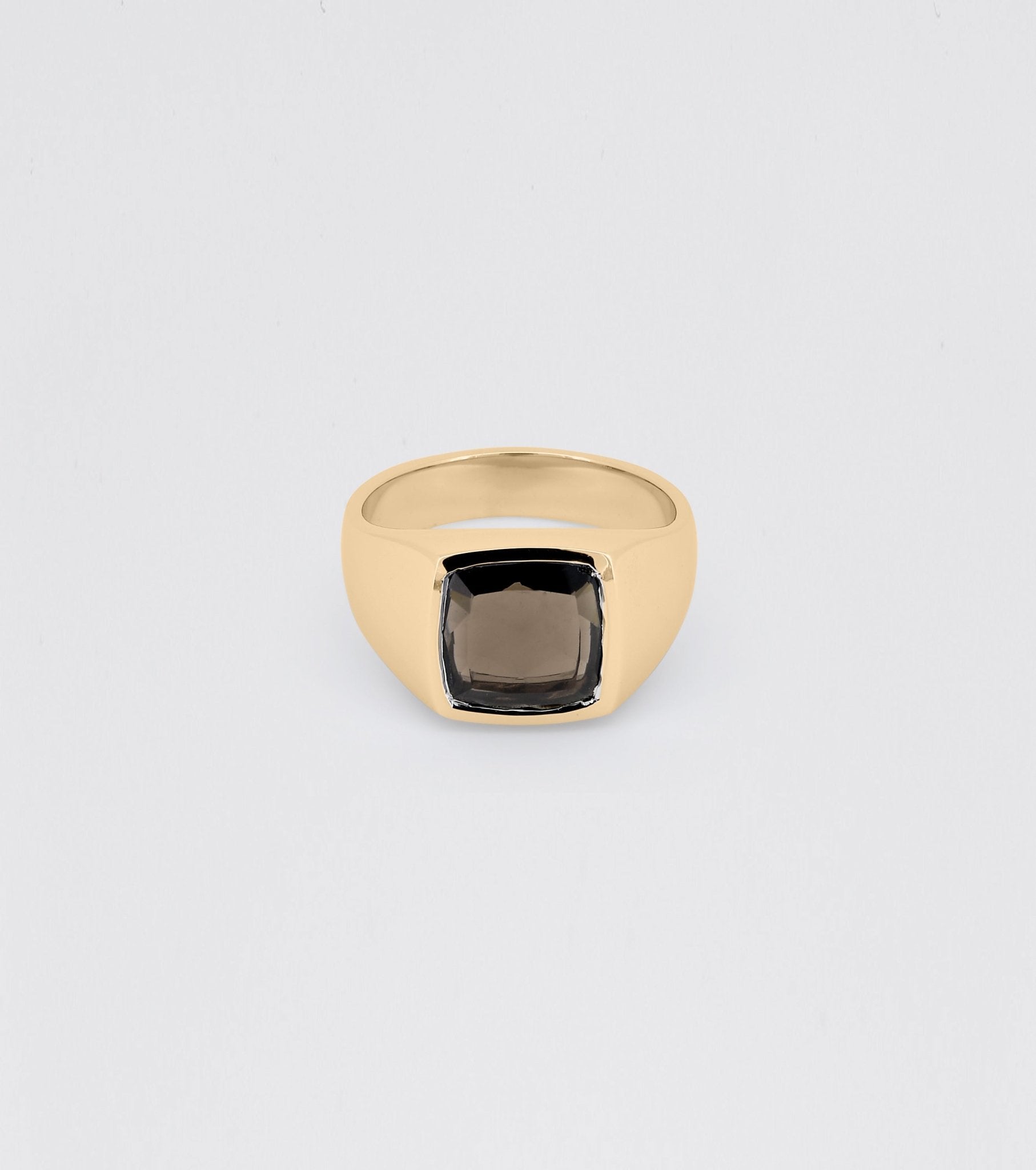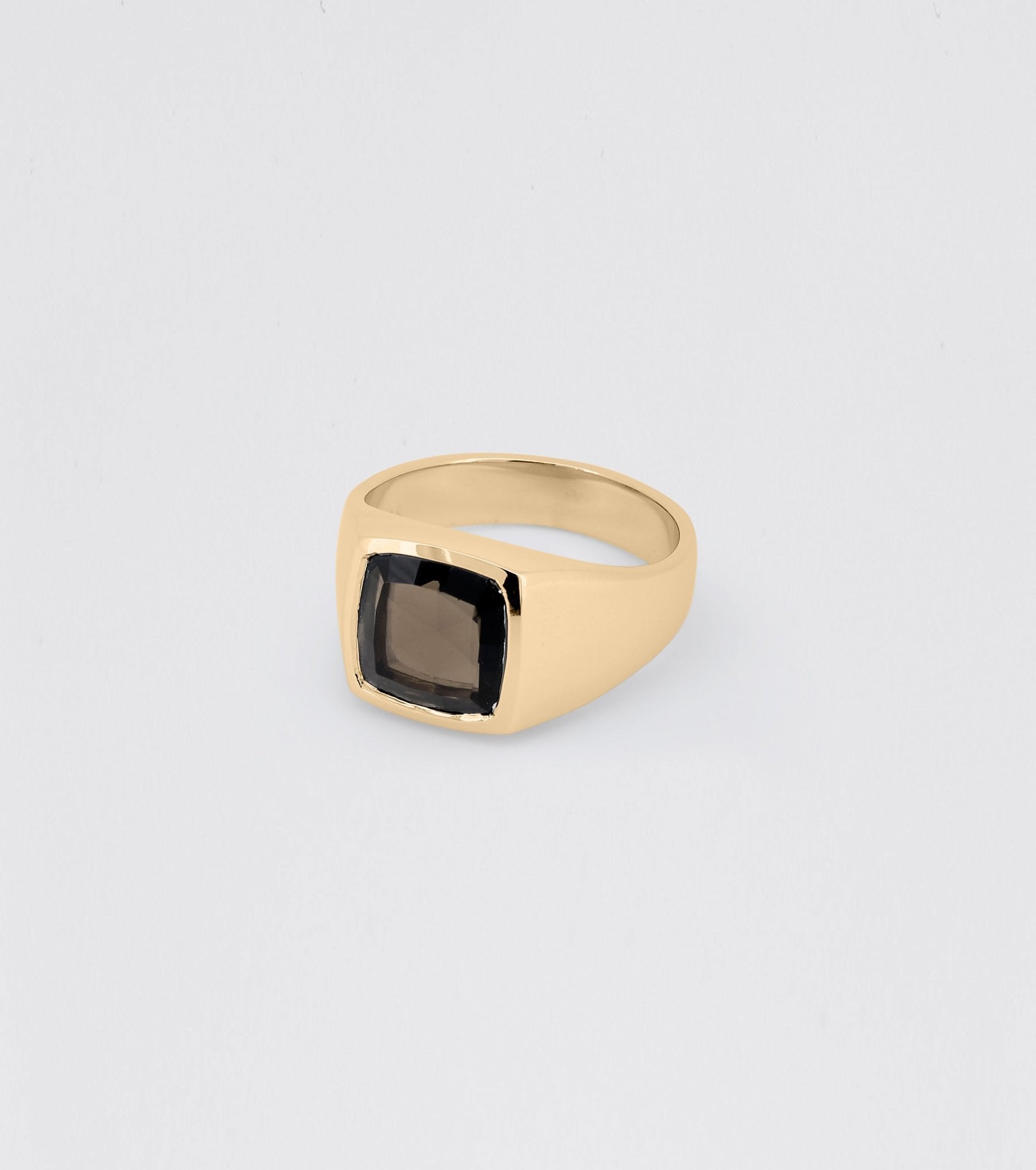 Facet Smokey Quartz gold signet - Sar Jewellery