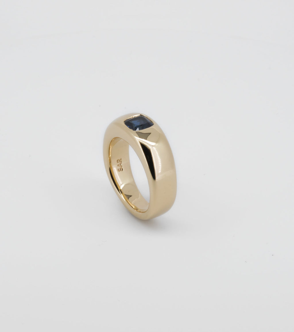 Blue Cushion Australian Sapphire band made in 9kt yellow gold