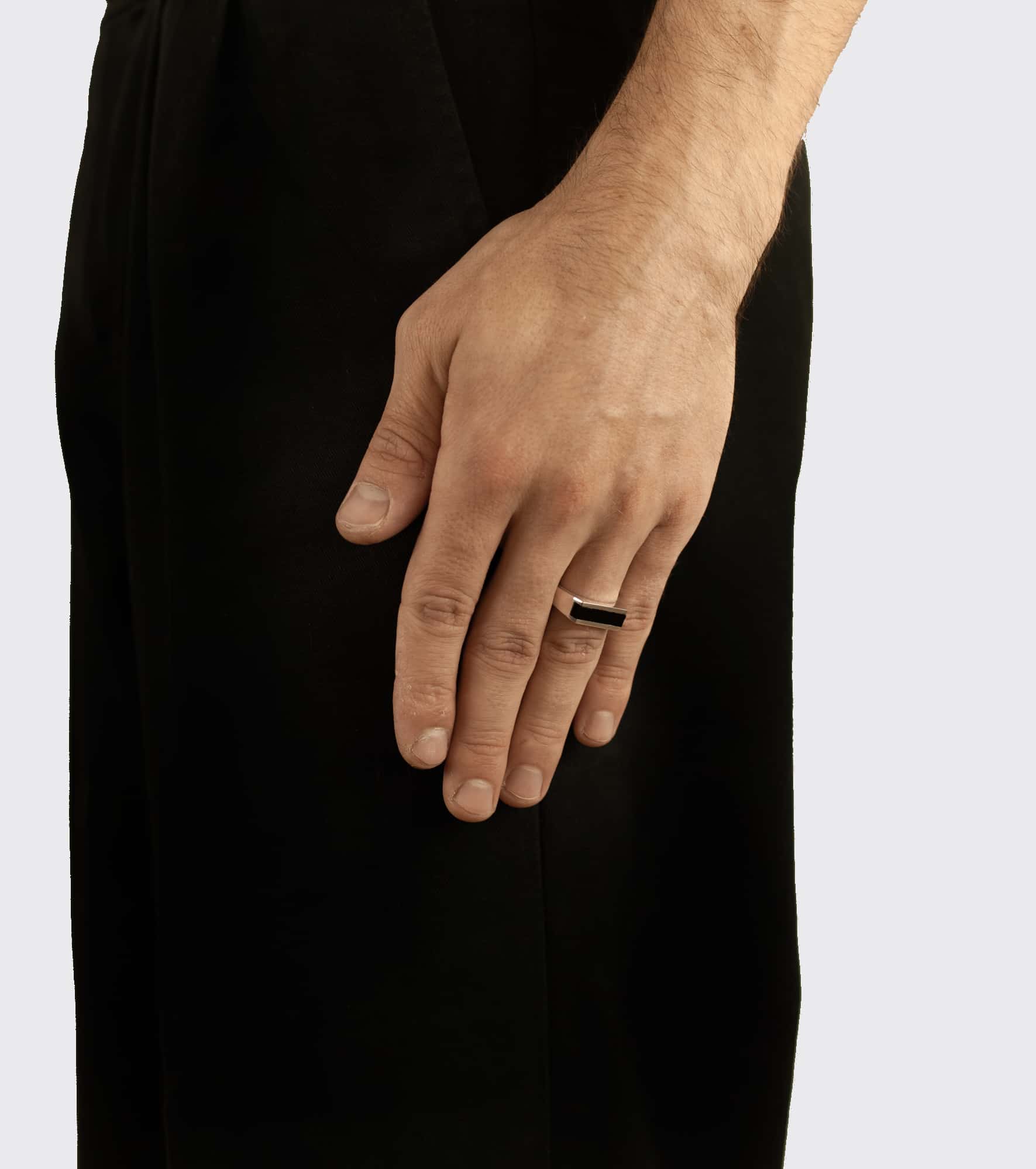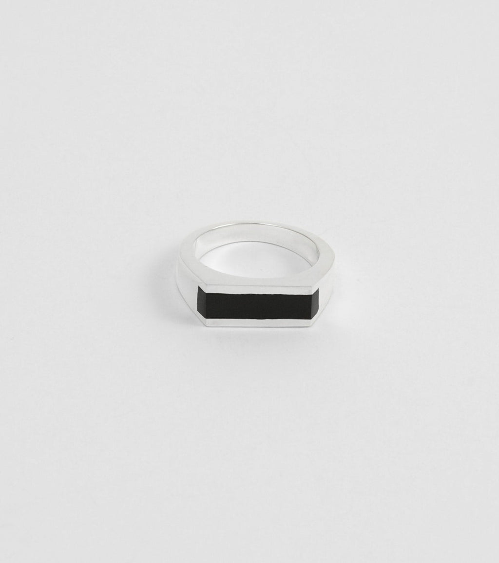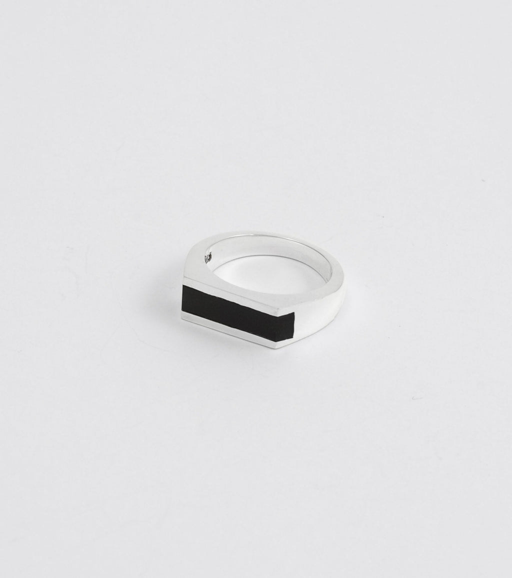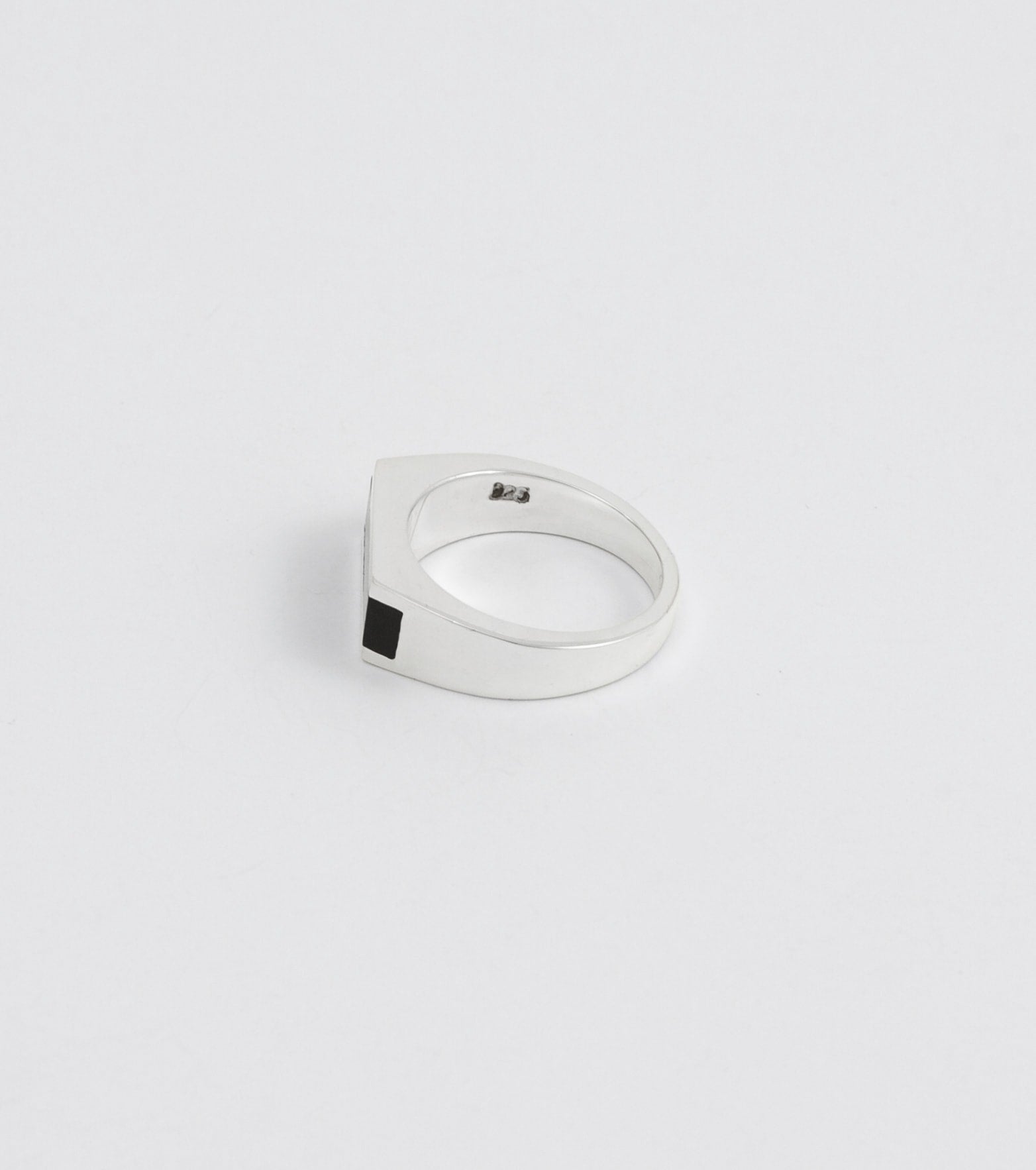 Inlay art dates back to 2500 B.C., where materials like gemstones were cut to fit precisely into spaces, creating a smooth finish. Our Marquina ring features this technique with a custom-cut black Onyx inlay set in sterling silver.