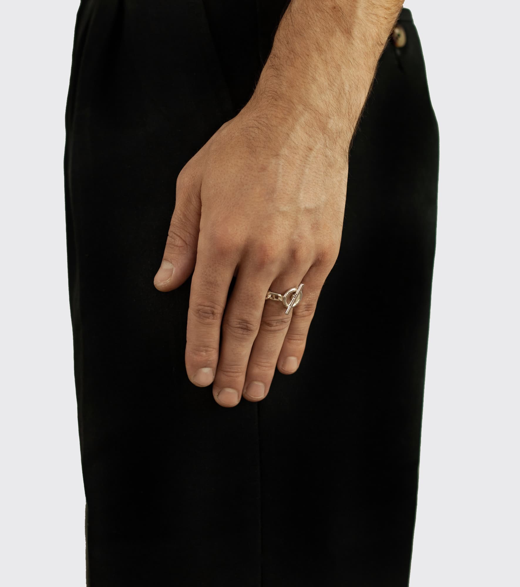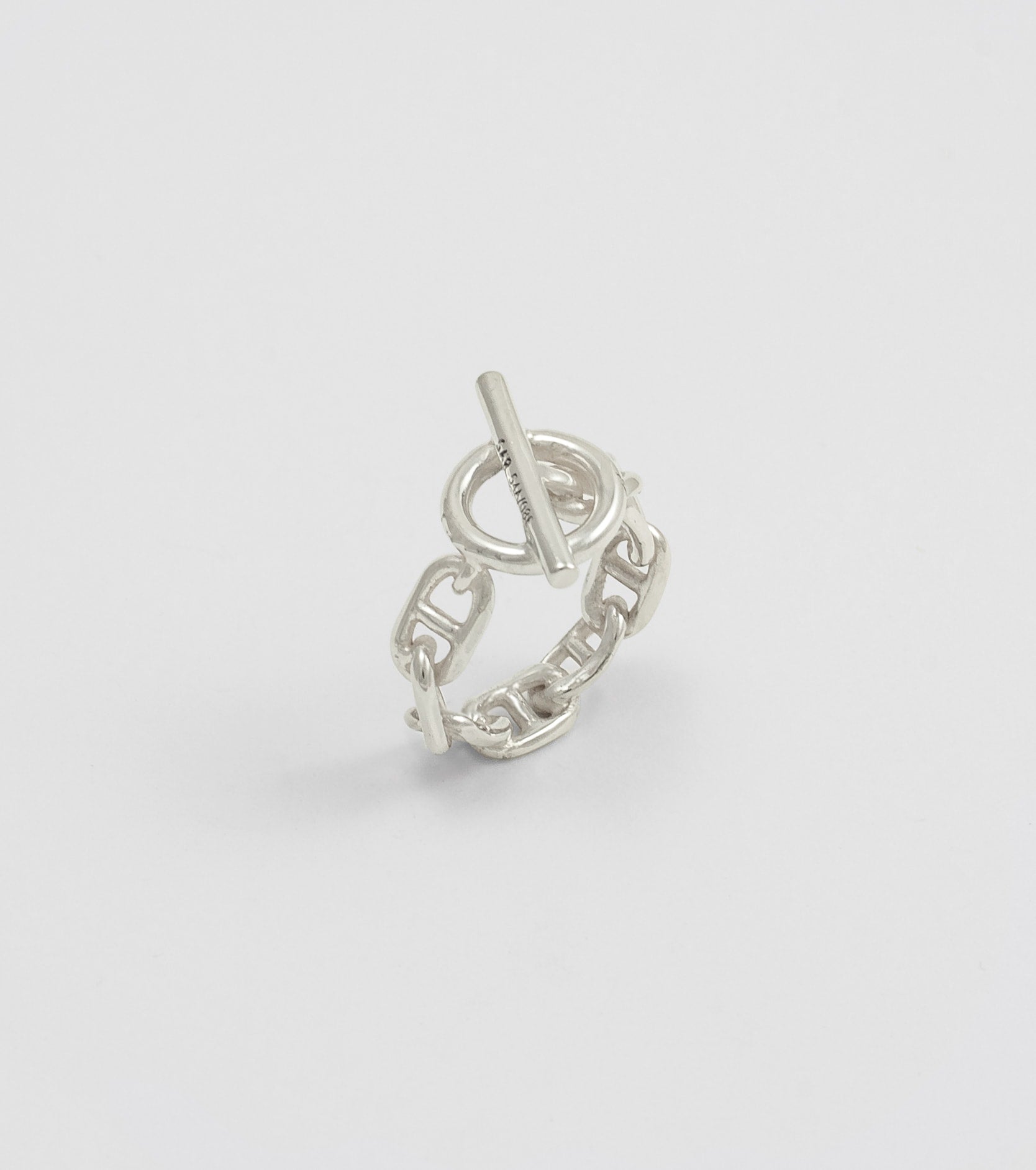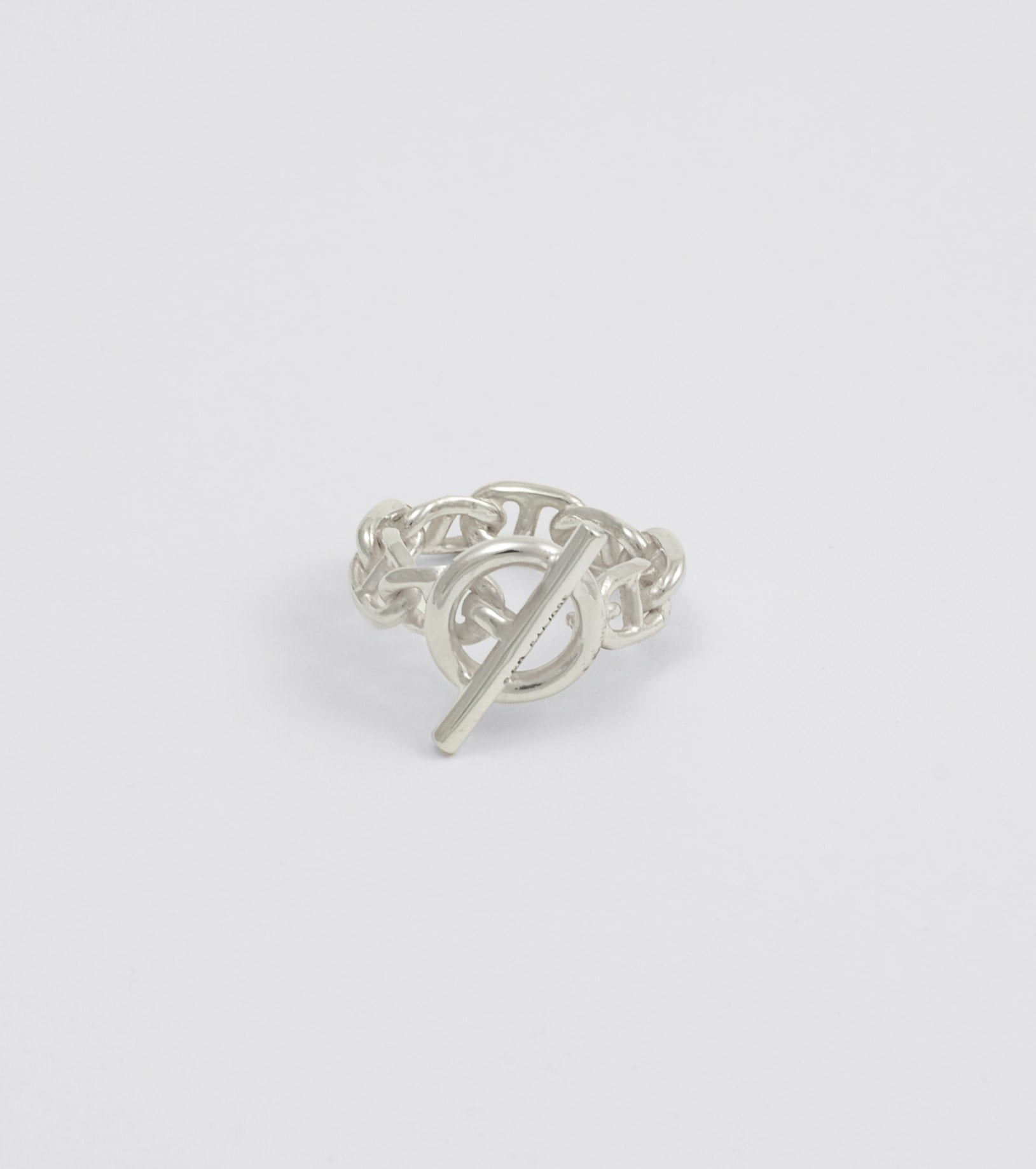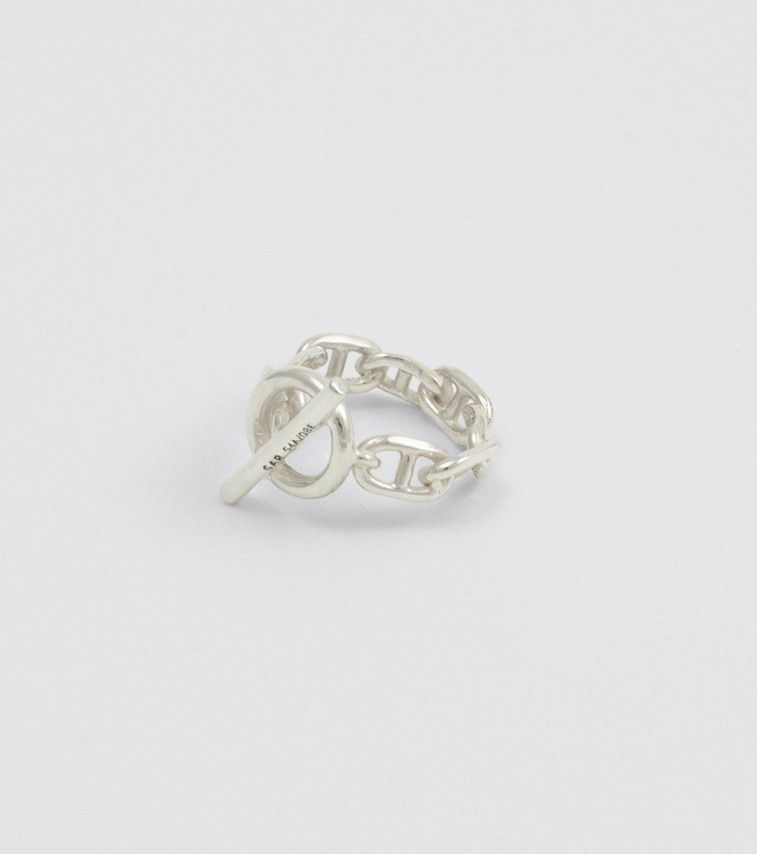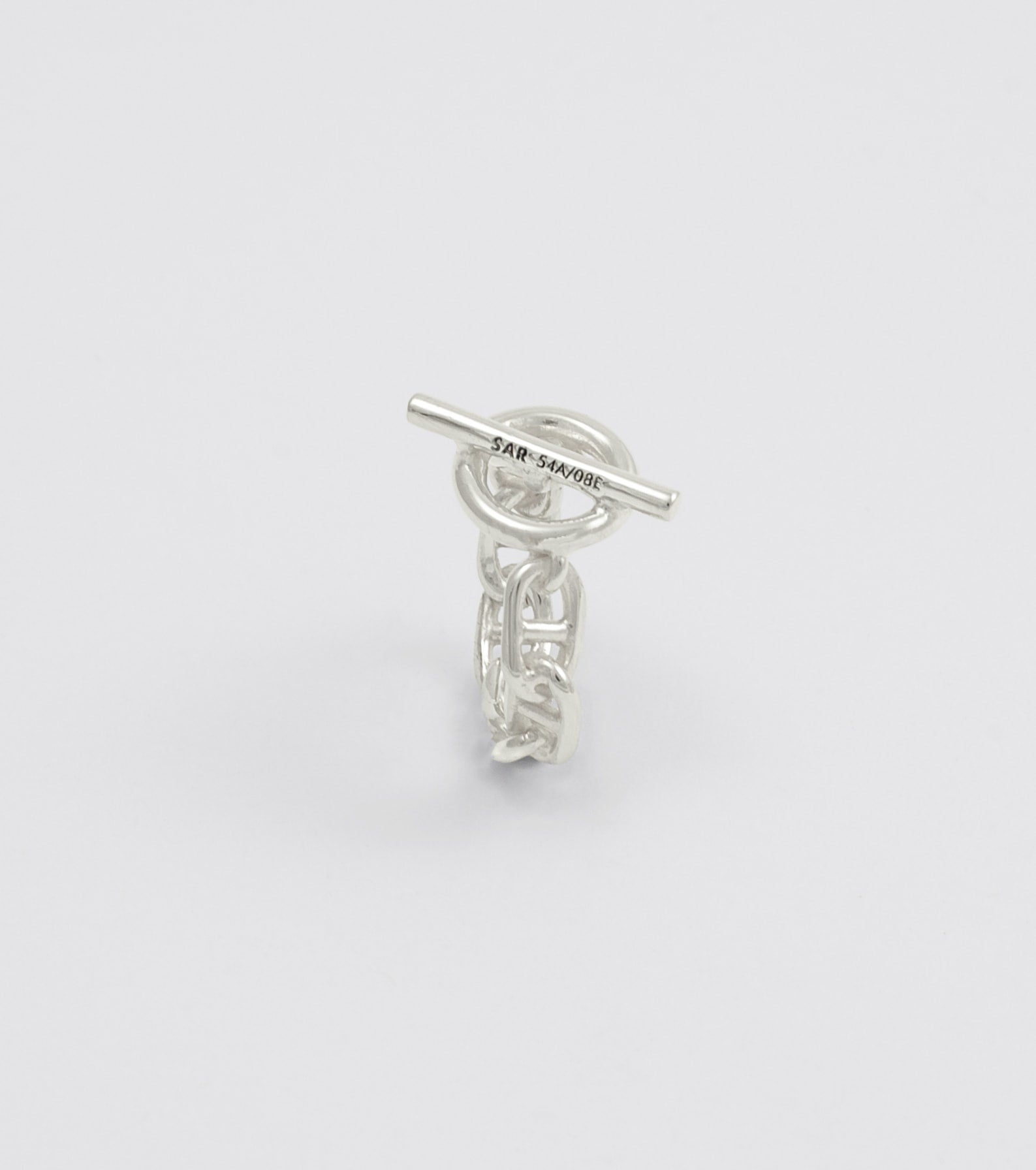 Eye ring in 9.25 sterling silver chain with a an oversized bar and eyelet closure.