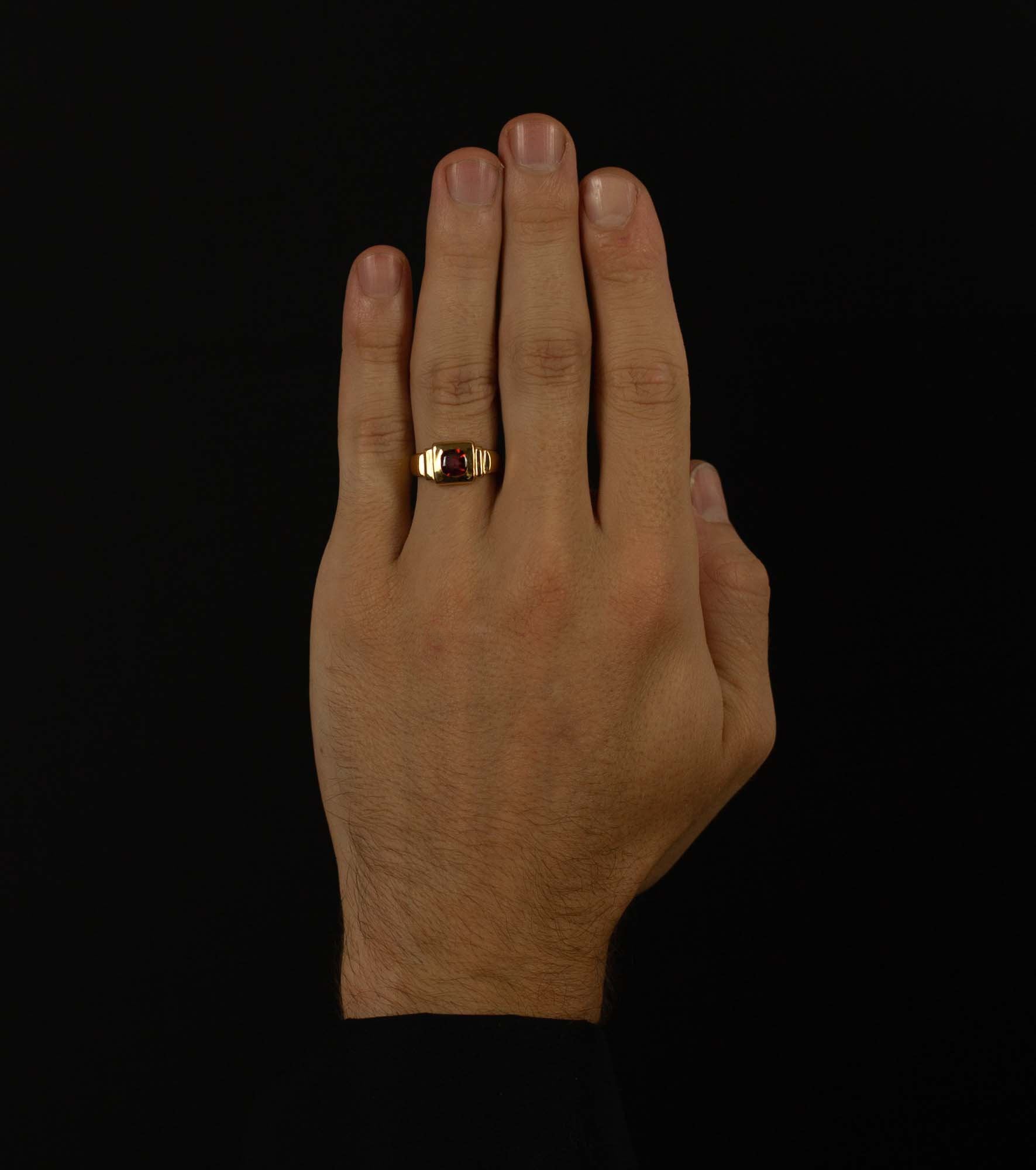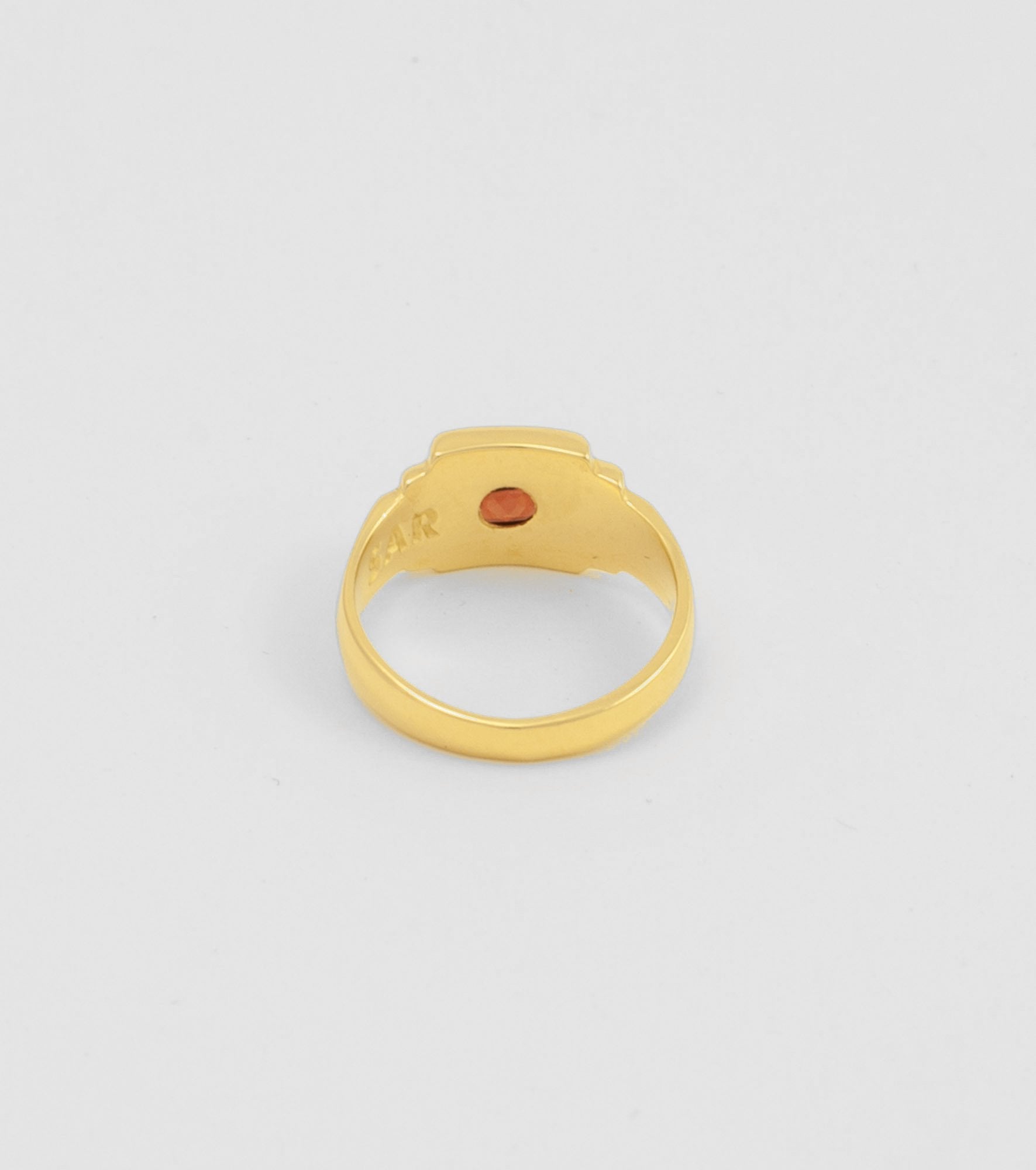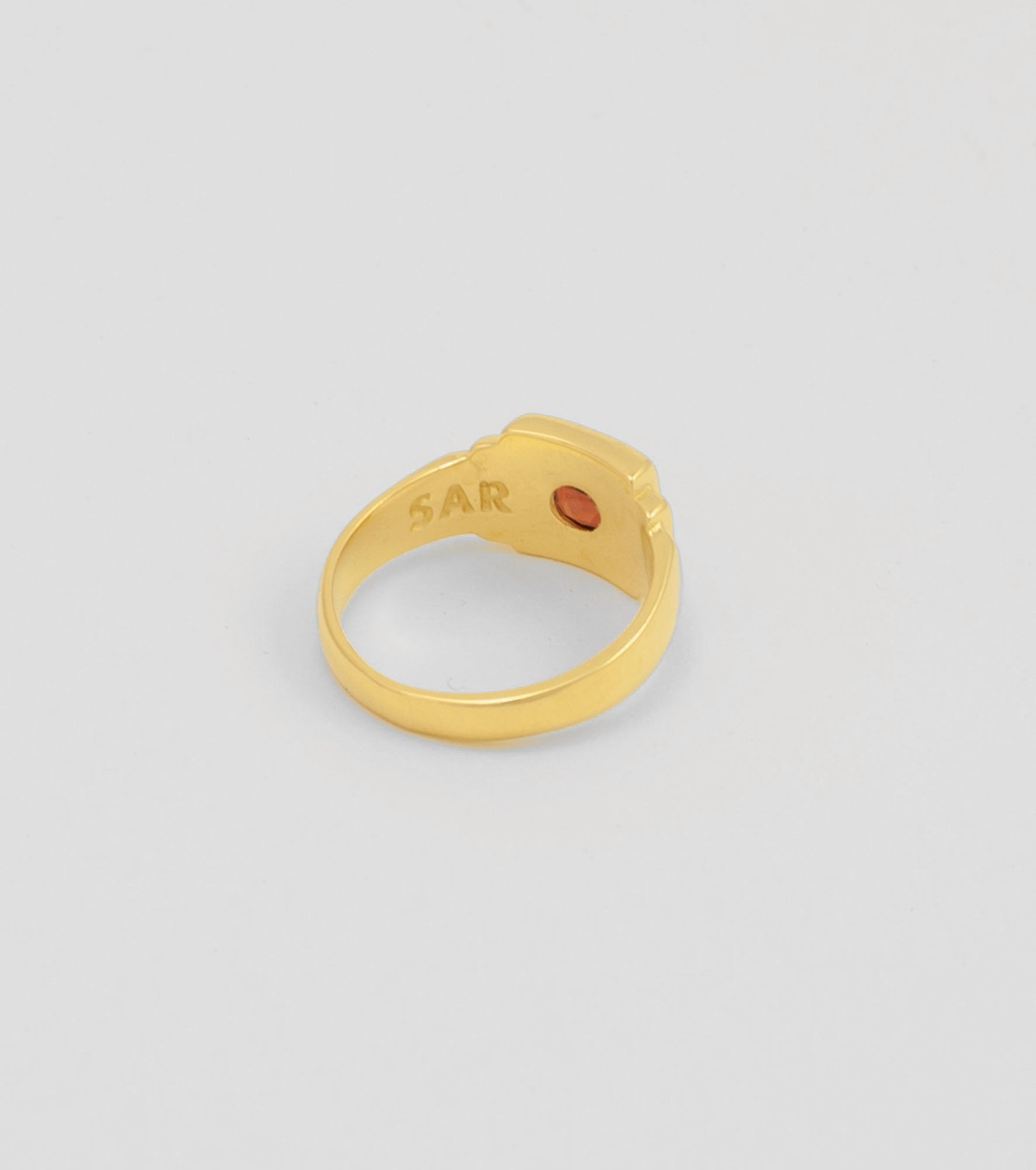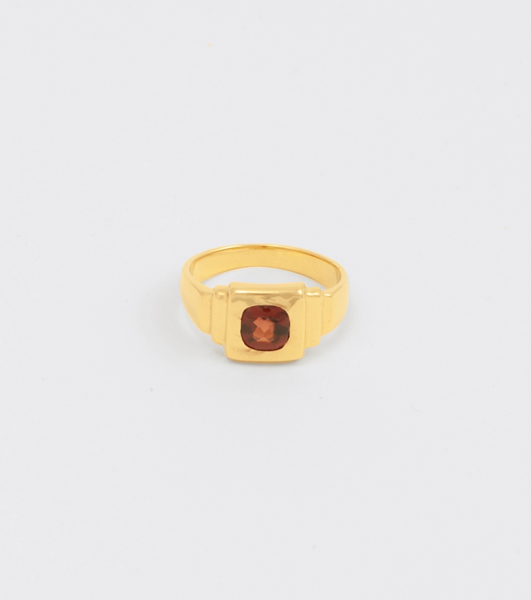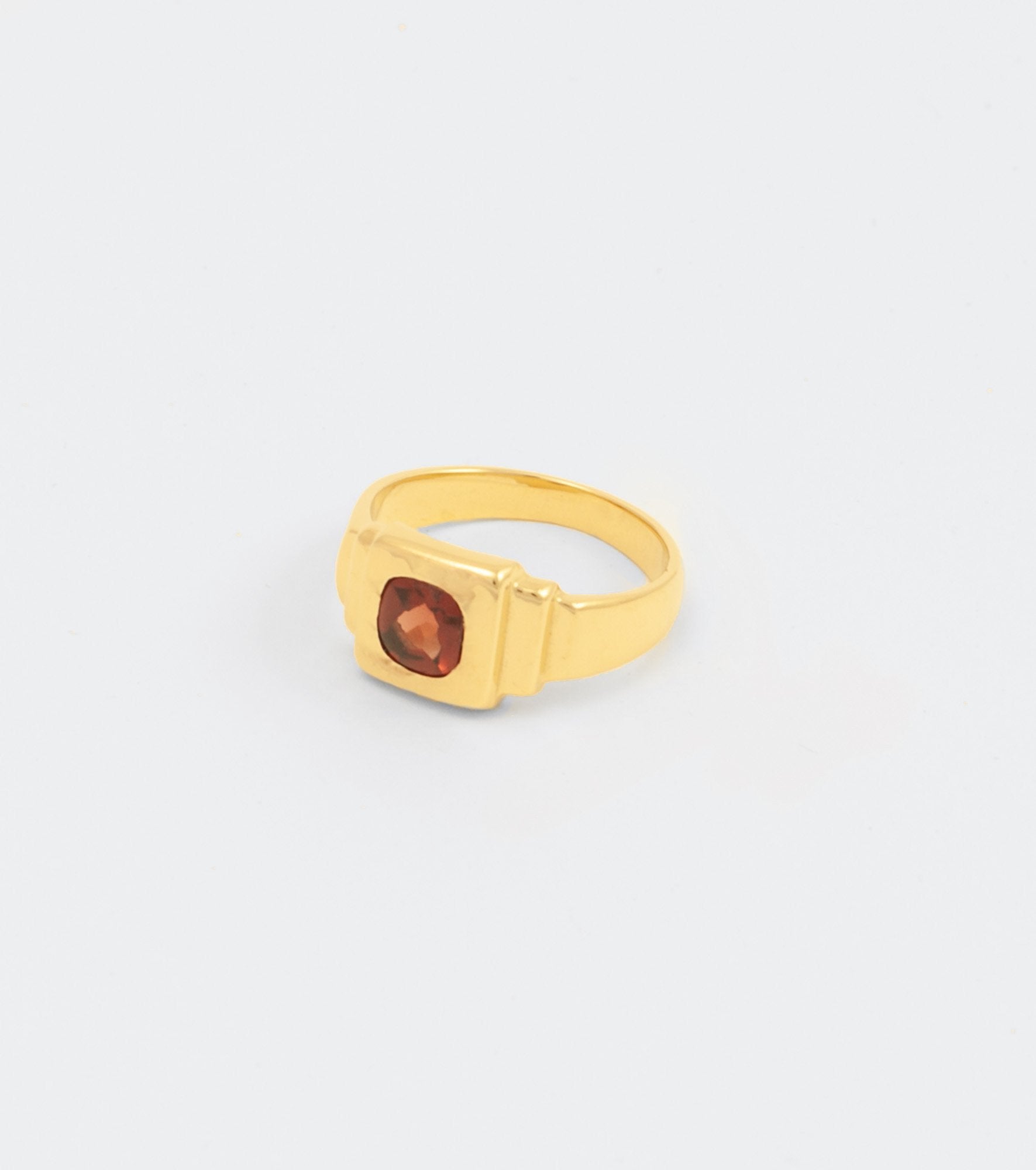 The Ducat ring is made in 9k solid gold with Garnet stone.